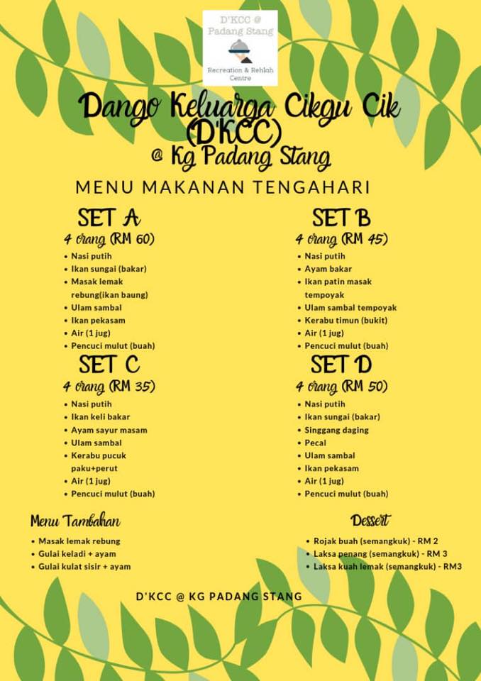 D’KCC Recreation & Rehlah Centre, Kampung Padang Stang is a family-oriented recreation centre in Gerik, Perak. It provides family a place to play in the river and also enjoy selected traditional ‘kampung’ dishes at a reasonable price. Located directly in front of the river, you enjoy your stay with the sound of nature and feel cool breeze from the river.