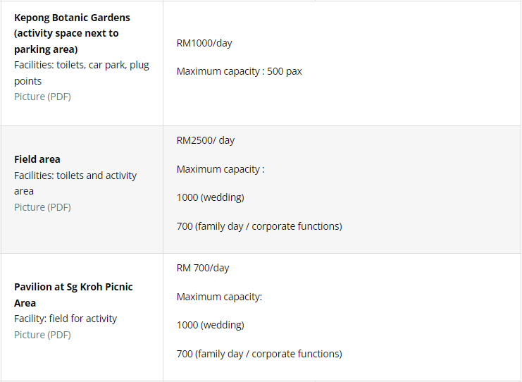 Areas in FRIM that are open to the public: