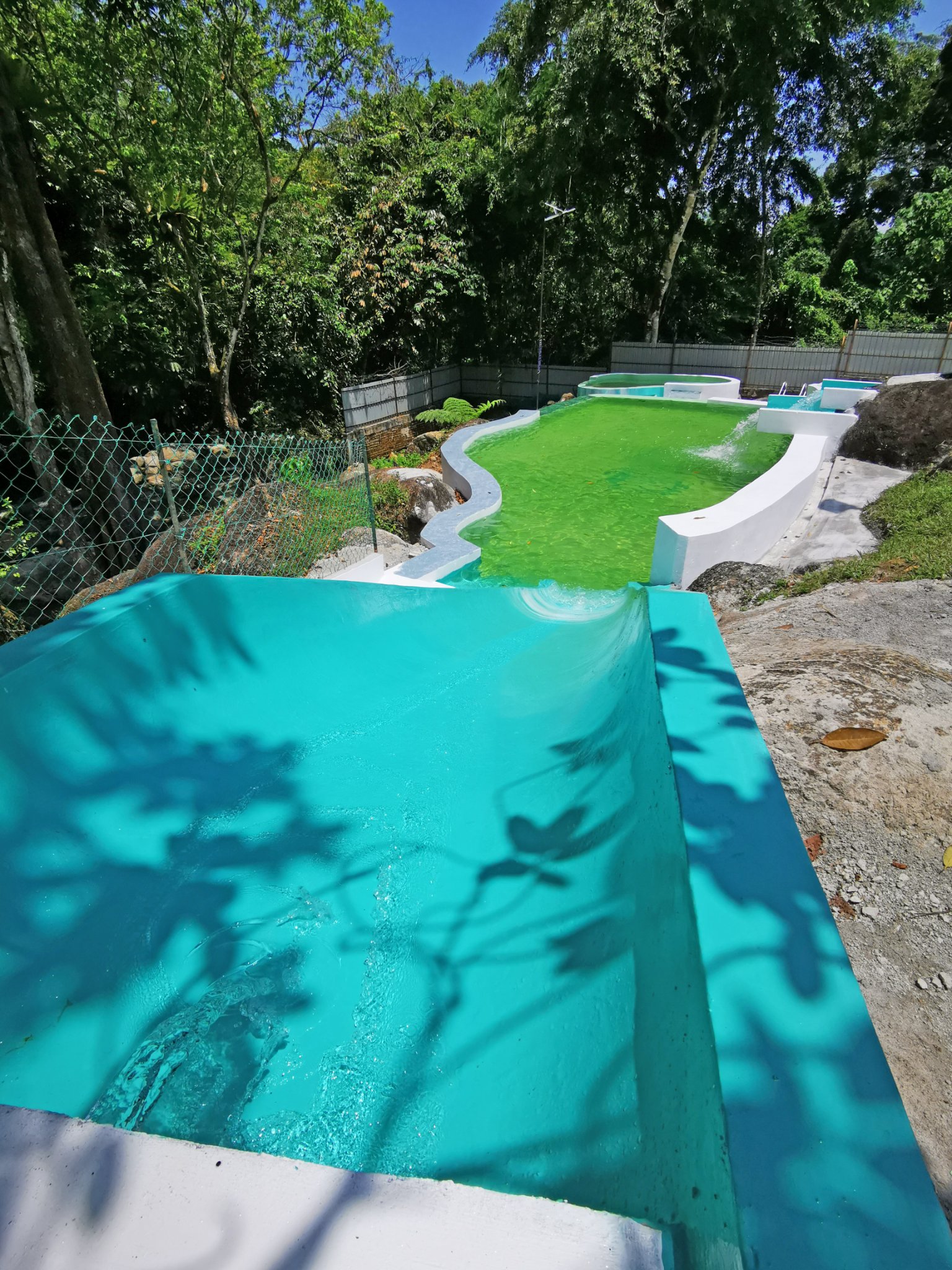 - Large swimming pool with slide